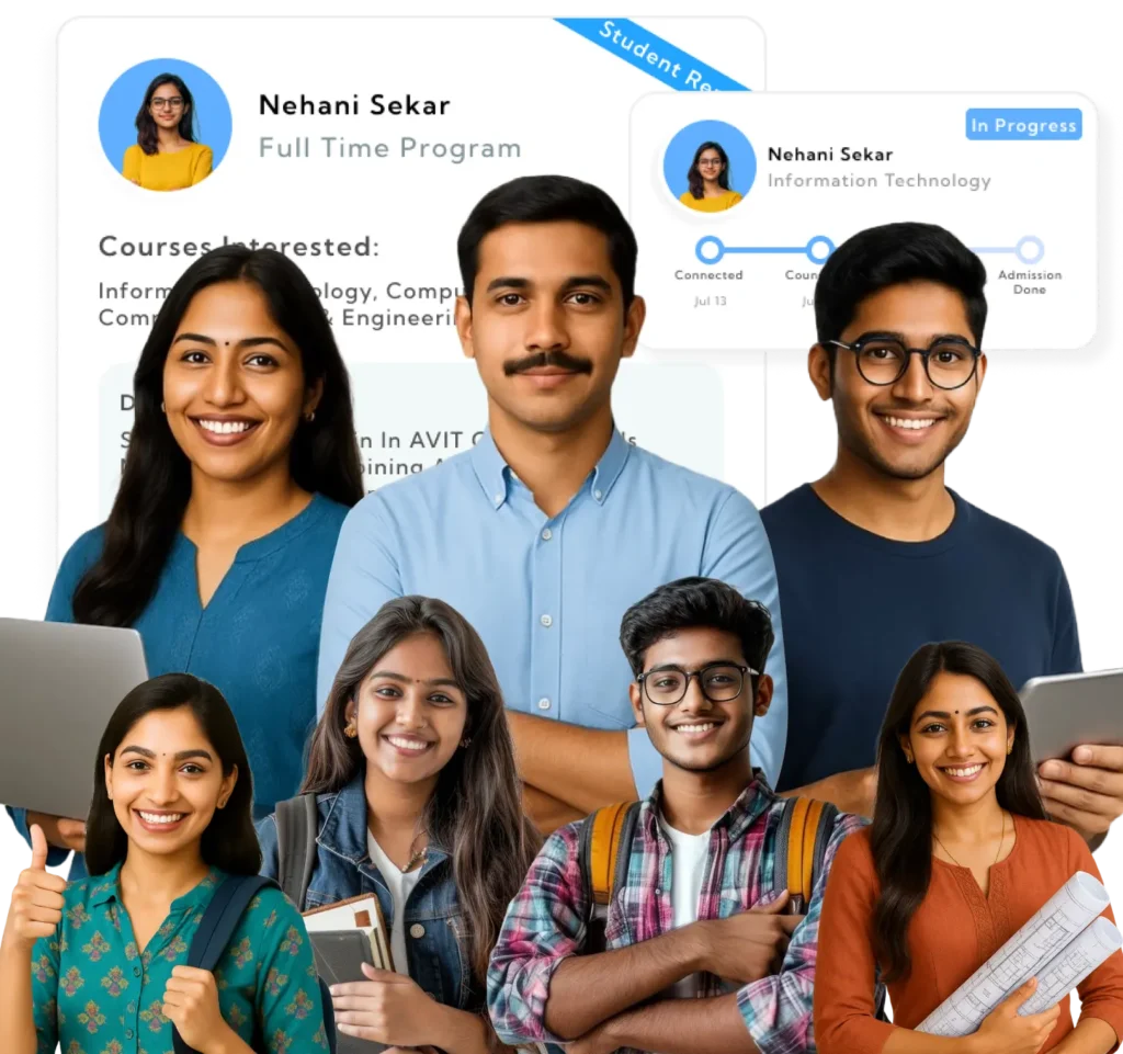 HOME COURSES COLLEGES Dr. MGR UNIVERSITY AVIT (AARUPADAIVEEDU INSTITUTE OF TECHNOLOGY) DHANALAKSHMI SRINIVASAN UNIVERSITY SMIT (SRI MUTHUKUMARAN INSTITUTE OF TECHNOLOGY) UPDATES ABOUT CONTACT #trusted by parents and institutions Expert Guidance for a Smooth andStress-Free College Admissions. Sharpen your path to college with expert advice and tailored insights. Enjoy a hassle-free admissions process and expert career guidance, unique to College Senior. Connect with a mentor
